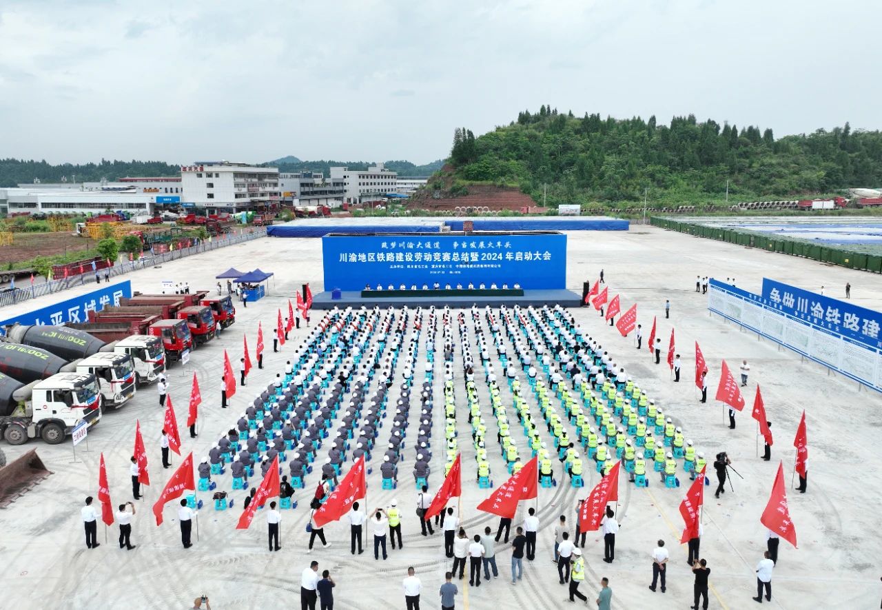 2024/07/15華西都市報訊:7月3日上午,南充市營山縣中鐵北京局成達萬高鐵軌枕廠內,由四川省總工會、重慶市總工會和中國鐵路成都局集團有限公司聯合舉行的“筑夢川渝大通道爭當發展火車頭”川渝地區鐵路建設勞動競賽總結暨2024...